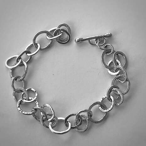 Zilveren schakelarmband met hamerslag. Lengte 19 cm Als je op zoek bent naar iets vergelijkbaars mail dan voor de mogelijkheden naar info@roelienbolhuis.nl
